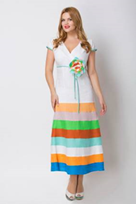 "Лёгкое льняное платье покорит своим дизайном. Великолепный покрой и длина платья прекрасно подчеркнут все достоинства фигуры. Оригинальное сочетание ярких цветов, создаёт богатое колористическое решение. Декором служит неповторимый цветок из льна.
