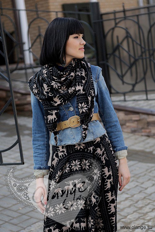 как и все шарфы геометрии "долька" может служить шарфом-шапкой, снудом, капюшоном и болеро;