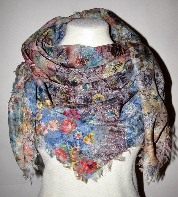 Абсолютная новинка на Российском рынке, эксклюзивная разработка наших дизайнеров - платок 2 в 1 изготовлен из равных частей хлопка и вискозы. Изготовлен по новейшей технологии, включающей в себя три этапа, каждый из которых сам по себе уникален : 1. Нанесение двусторонней трансферной печати. 2. Вытравка узора на ткани. 3. Нанесение "золотого" тиснения поверх рисунка. Слияние этих технологий позволило получить изделие, аналогов которому на сегодняшний день нет.