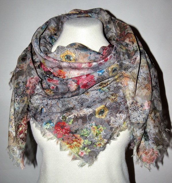 Абсолютная новинка на Российском рынке, эксклюзивная разработка наших дизайнеров - платок 2 в 1 изготовлен из равных частей хлопка и вискозы. Изготовлен по новейшей технологии, включающей в себя три этапа, каждый из которых сам по себе уникален : 1. Нанесение двусторонней трансферной печати. 2. Вытравка узора на ткани. 3. Нанесение "золотого" тиснения поверх рисунка. Слияние этих технологий позволило получить изделие, аналогов которому на сегодняшний день нет.