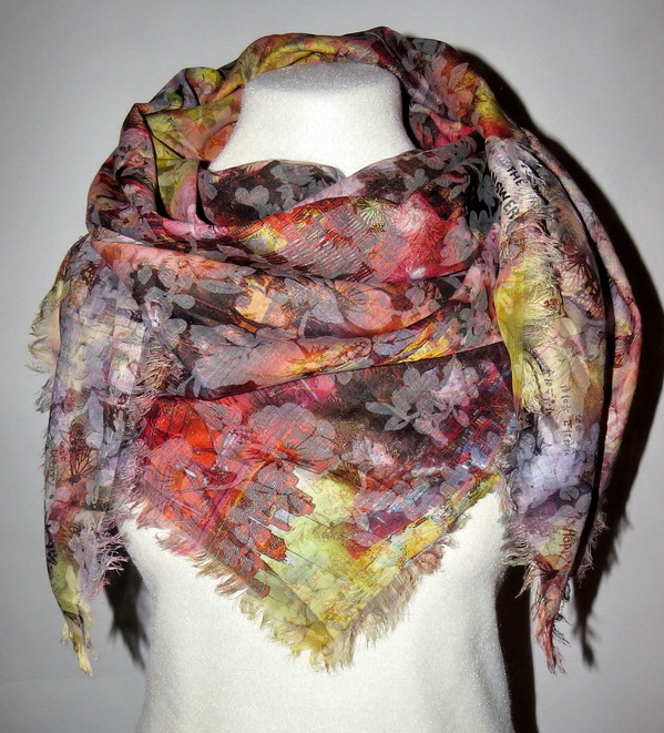 Абсолютная новинка на Российском рынке, эксклюзивная разработка наших дизайнеров - платок 2 в 1 изготовлен из равных частей хлопка и вискозы. Изготовлен по новейшей технологии, включающей в себя три этапа, каждый из которых сам по себе уникален : 1. Нанесение двусторонней трансферной печати. 2. Вытравка узора на ткани. 3. Нанесение "золотого" тиснения поверх рисунка. Слияние этих технологий позволило получить изделие, аналогов которому на сегодняшний день нет.