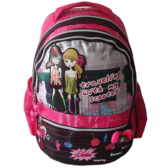 Рюкзак имеет 3 основных отделения застегивающихся на молнию высококачественную т.8.На передней стенке имеется накладной карман на молнии. В первом отделении имеется органайзар.Спинка рюкзака выполнена из 3-х слойной сетки, что обеспечивает циркуляцию воздуха и комфортное ношение. Подходит для школы.Есть два боковых кармана из сетки для воды.