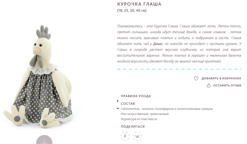 Курочка Глаша 40см Ряд 2шт 1079,71р.+%