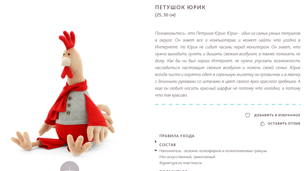 Петушок Юрик 30см Ряд 6см 792,80р.+% - закончился