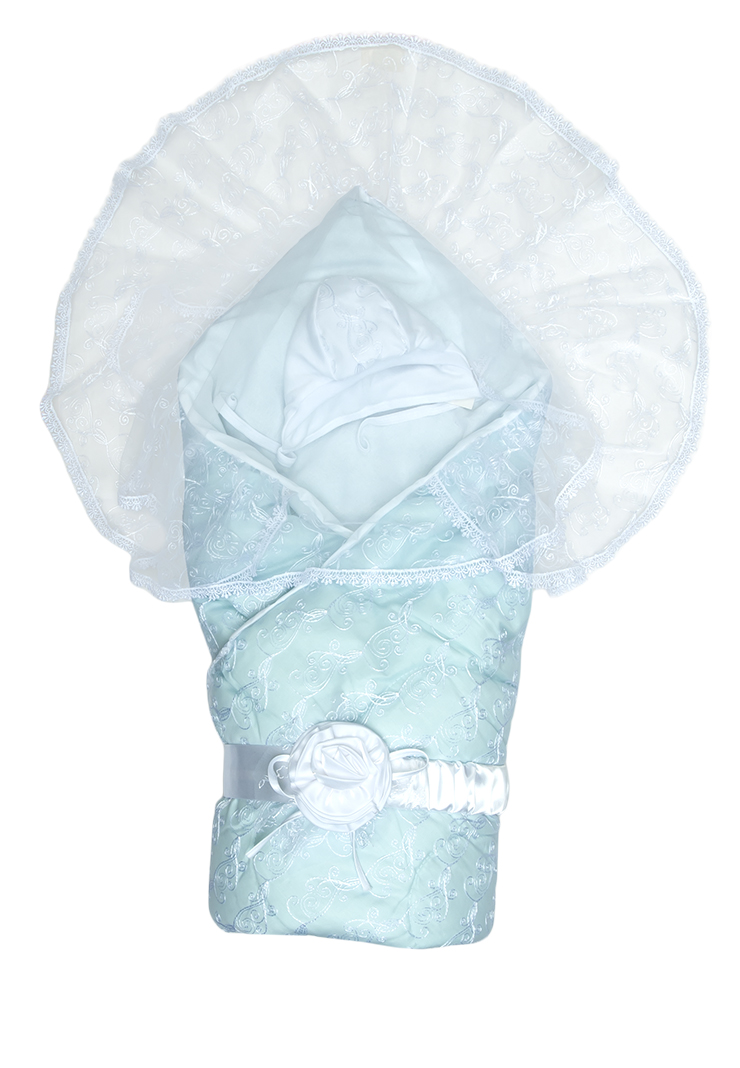 Нарядный конверт-одеяло для торжественного события. Двойная роскошная вуаль, ажурный пододеяльник, теплое одеяло "Кашемир", утепленная шапочка и сменный пододеяльник из бязи. Конверт универсален: он подойдет как для выписки из роддома и ежедневных прогулок с малышом, так и в качестве одеялка в кроватку и в коляску.