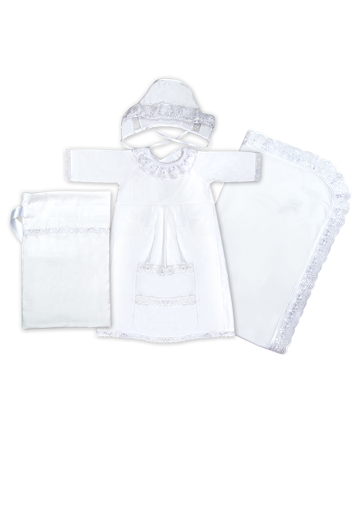Комплектация: Платье, чепчик, пеленка, мешочек
