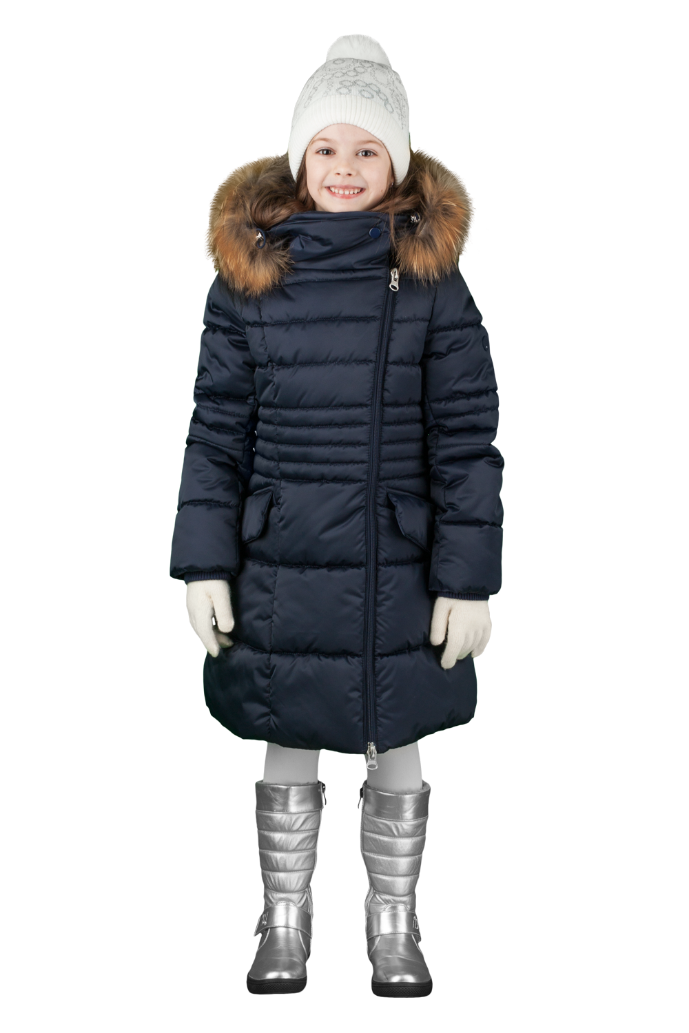 Классическое пальто для девочки с опушкой из натурального меха - идеальная модель для школы. Асимметричная застёжка-молния, декоративная стёжка, атласная ткань.