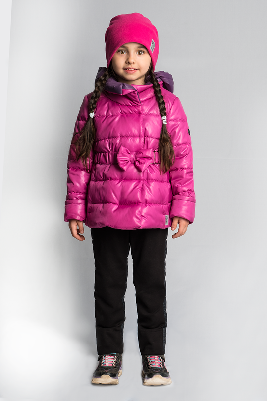 Тёплый и очень женственный комплект для малышек. Приталенная курточка с бантом на поясе и зауженные брюки с подтяжками - идеально для маленьких модниц.