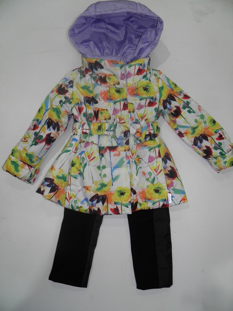 Тёплый и очень женственный комплект для малышек. Приталенная курточка с бантом на поясе и зауженные брюки с подтяжками - идеально для маленьких модниц.