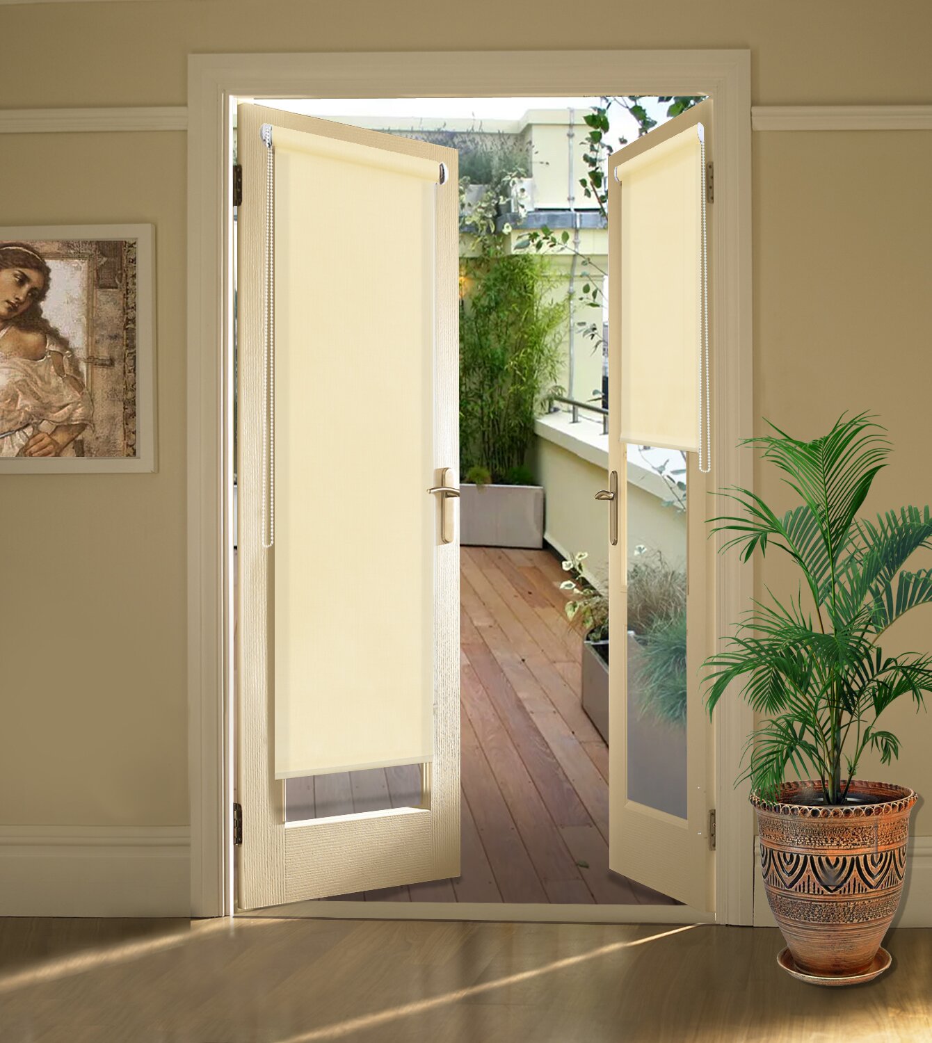 Изделие размещается без сверления на оконную раму/ балконную дверь.