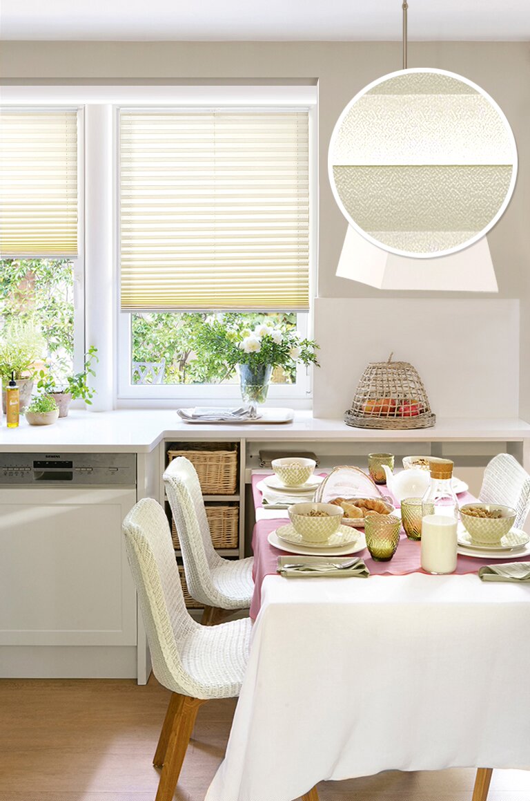 В отличие от других видов штор, конструкция штор плиссе имеет меньший вес, компактнее и лучше всего позволяет избежать провисания материала, что незаменимо для наклонных потолочных окон, для открывающихся окон.