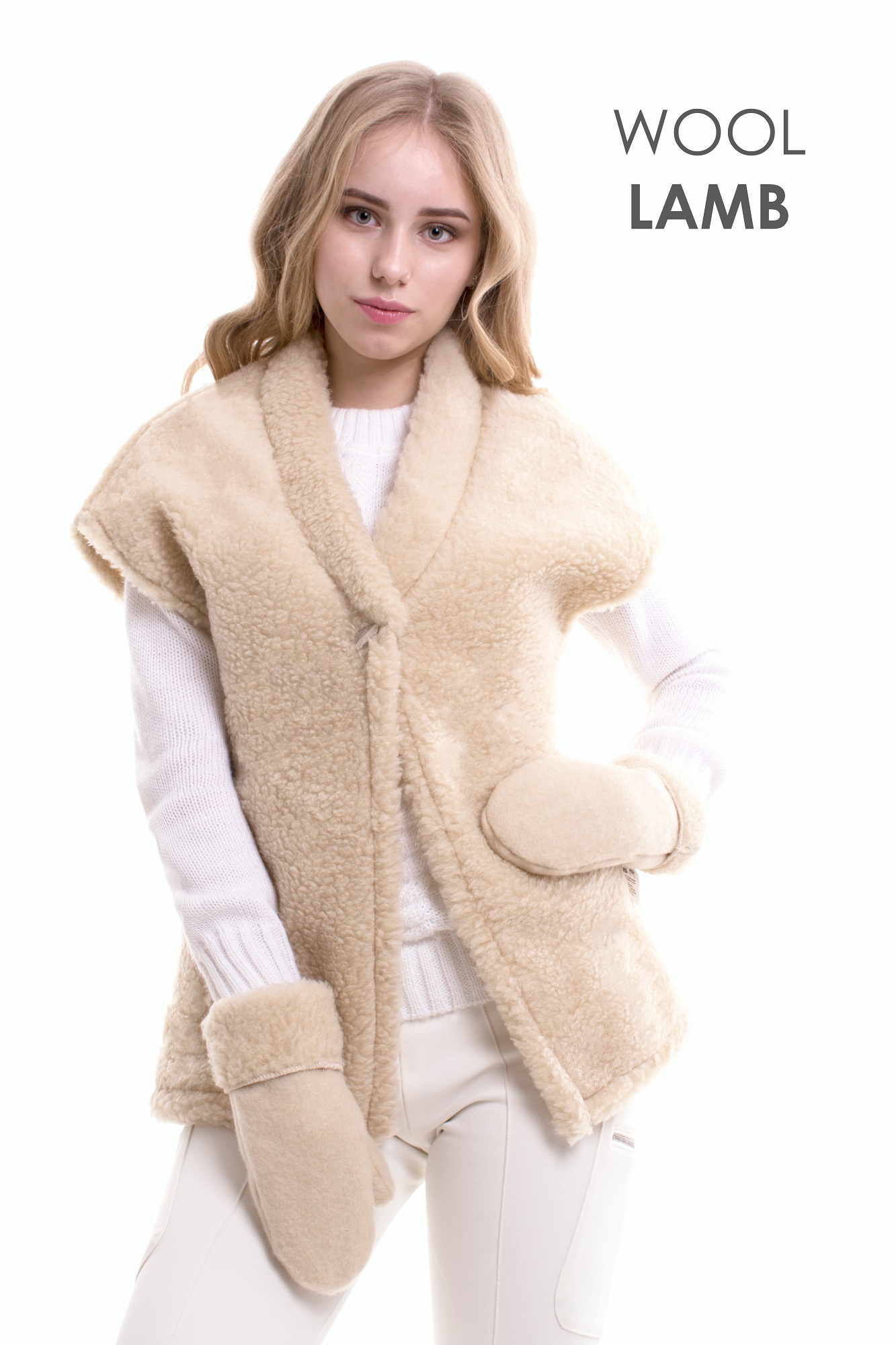 Жилет выполнен в нейтральном бежевом или белом цвете, без ярких отделок, что позволит его надеть с любым комплектом гардероба и в любом возрасте.Двусторонняя 100% овечья шерсть согреет особым <<сухим теплом>>. Шерсть мериноса пропускает воздух, впитывая частично влагу. При высоких температурах в салоне или помещении можно забыть про излишнюю потливость. Шерсть испокон веков уберегала людей от простуд, помогала в профилактике заболеваний суставов (выделяя животный воск Ланолин), поддерживала тонус кровеносной системы (массаж ворсинками кровеносных сосудов через верхние слои эпидермиса). Шерсть очень легко стирается руками при невысоких температурах. Натуральный материал прекрасно держит форму поле высыхания.