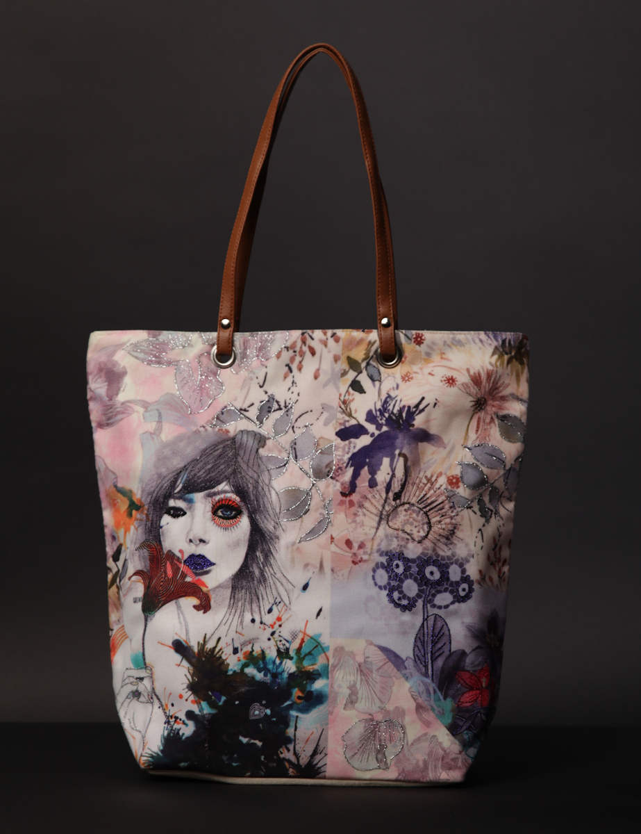 Городская сумка из смесовой ткани с цифровым принтом. Ручки из искуственной кожи 28 см. Внутри имеется карман на "молнии" и кармашек для телефона. Сумка украшена вышивкой.