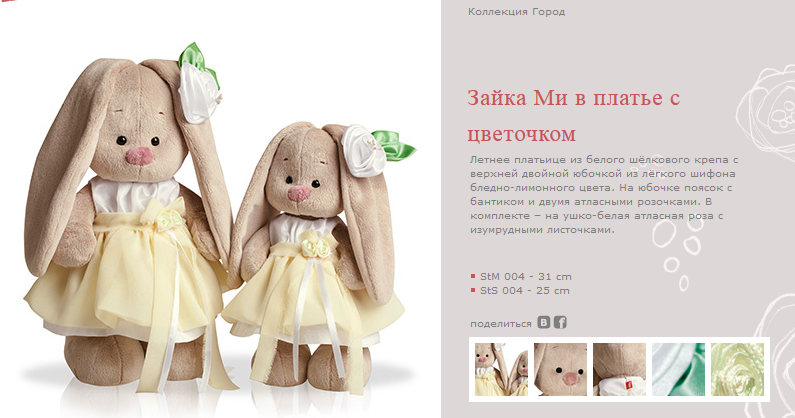 StS-004 Зайка М*и в платье с цветочком(малый) 25см 480р.+% Ряд 6шт.