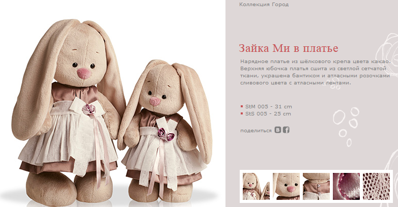 StS-005 Зайка Ми в платье (малый) 25см 480р.+% Ряд 6шт.