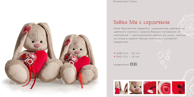 SidS-011 Зайка Ми с сердечком(малый) 18см. 340р.+% Ряд 6шт.