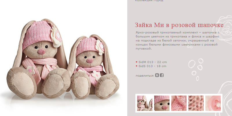 SidS-013 Зайка Ми в розовой шапочке(малый) 18см 370р.+% Ряд 6шт.