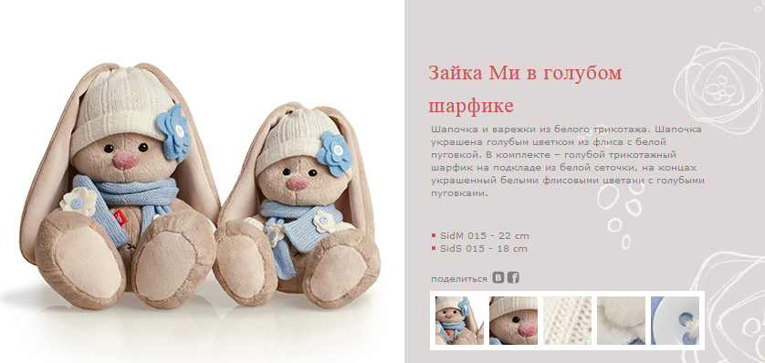 SidS-015 Зайка Ми в голубом шарфике (малый) 18см 410р.+% Ряд 6шт.