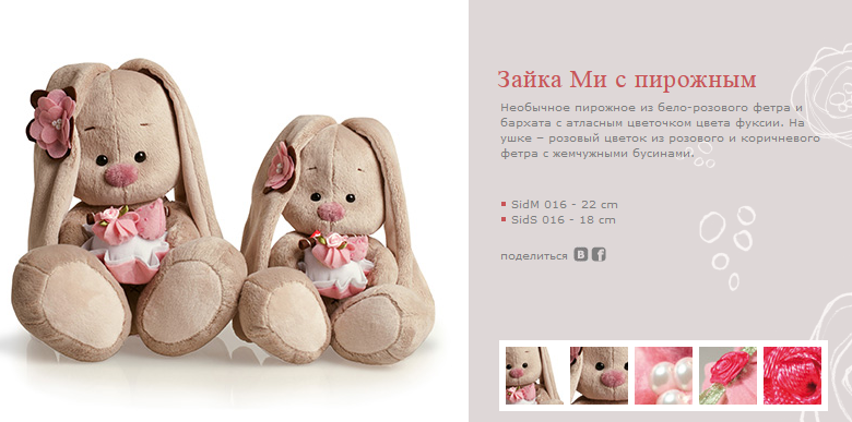 SidS-016 Зайка Ми с пирожным (малый) 18см 360р.+% Ряд 6шт.