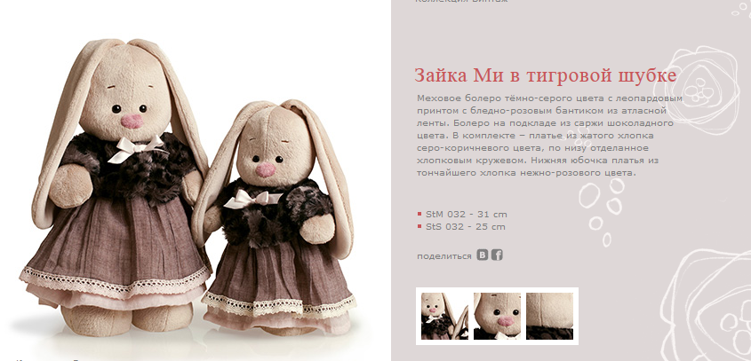 StS-032 Зайка Ми в тигровой шубке и сером платье (малый) 25см 620р.+% Ряд 6шт.