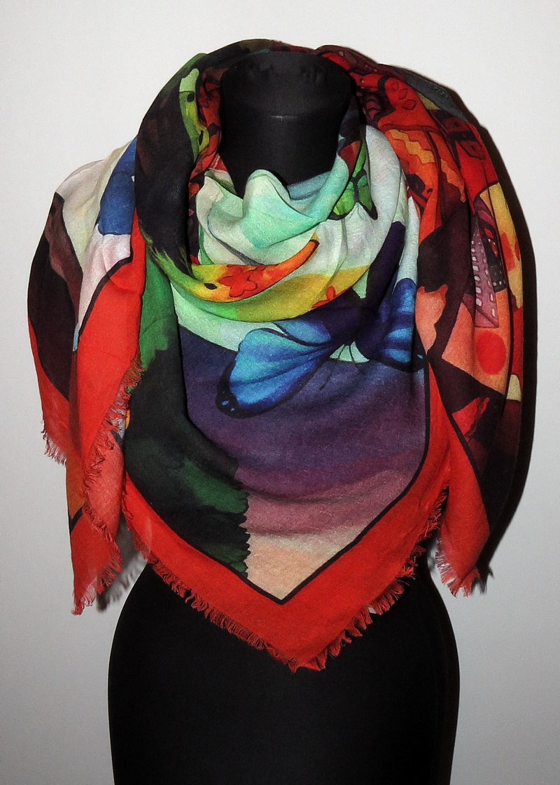 Уютная обволакивающая ткань, немного жатая, тонкая, но оберегающая от ветров. Красивые яркие цвета и цифровые рисунки делают его уникальным.