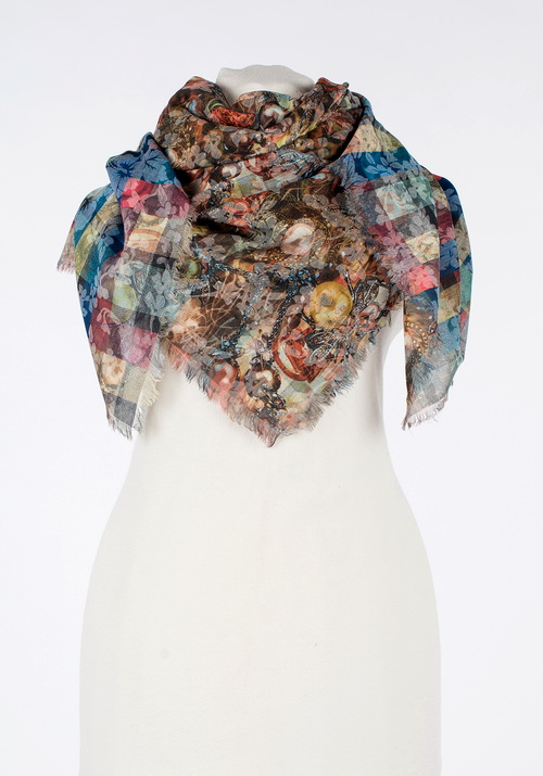 Абсолютная новинка на Российском рынке, эксклюзивная разработка наших дизайнеров - платок 2 в 1 изготовлен из равных частей хлопка и вискозы. Изготовлен по новейшей технологии, включающей в себя три этапа, каждый из которых сам по себе уникален : 1. Нанесение двусторонней трансферной печати. 2. Вытравка узора на ткани. 3. Нанесение "золотого" тиснения поверх рисунка. Слияние этих технологий позволило получить изделие, аналогов которому на сегодняшний день нет.