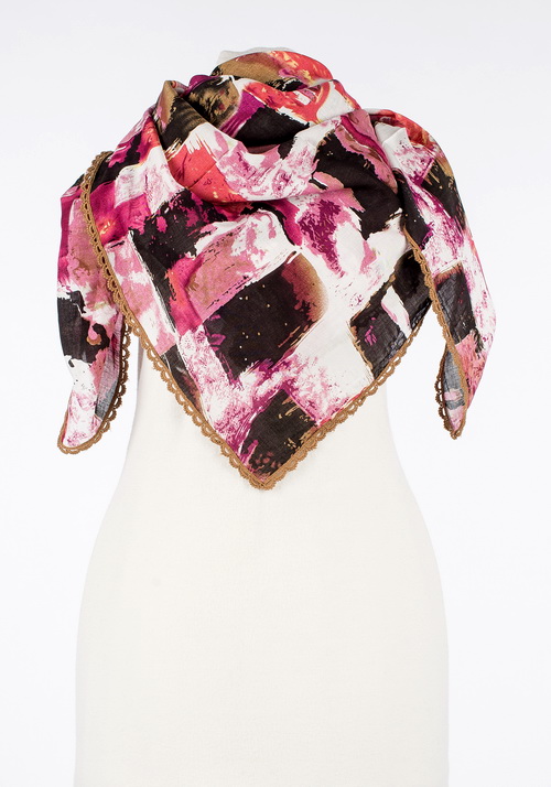 Платок изготовлен из 100% мерсеризированного хлопка. В процессе мерсеризации хлопок приобретает следующие свойства: повышенную гигроскопичность, шелковистый блеск, повышенную прочность. Изделия из мерсеризированного хлопка меньше мнутся, не выцветают и не линяют, не дают усадки при стирке, очень комфортны и приятны на ощупь.