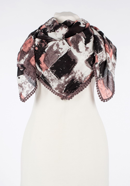 Платок изготовлен из 100% мерсеризированного хлопка. В процессе мерсеризации хлопок приобретает следующие свойства: повышенную гигроскопичность, шелковистый блеск, повышенную прочность. Изделия из мерсеризированного хлопка меньше мнутся, не выцветают и не линяют, не дают усадки при стирке, очень комфортны и приятны на ощупь.